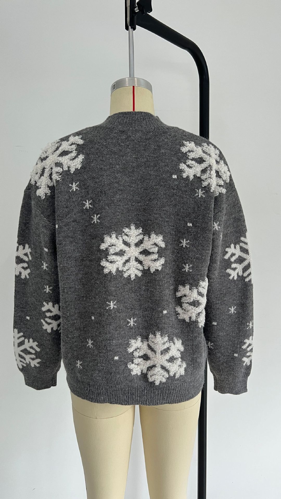 Christmas snowflake print women's casual knit sweater, autumn and winter casual pullover tops, fashionable and comfortable.