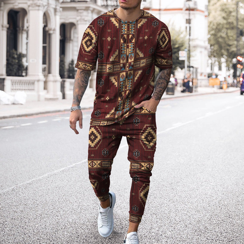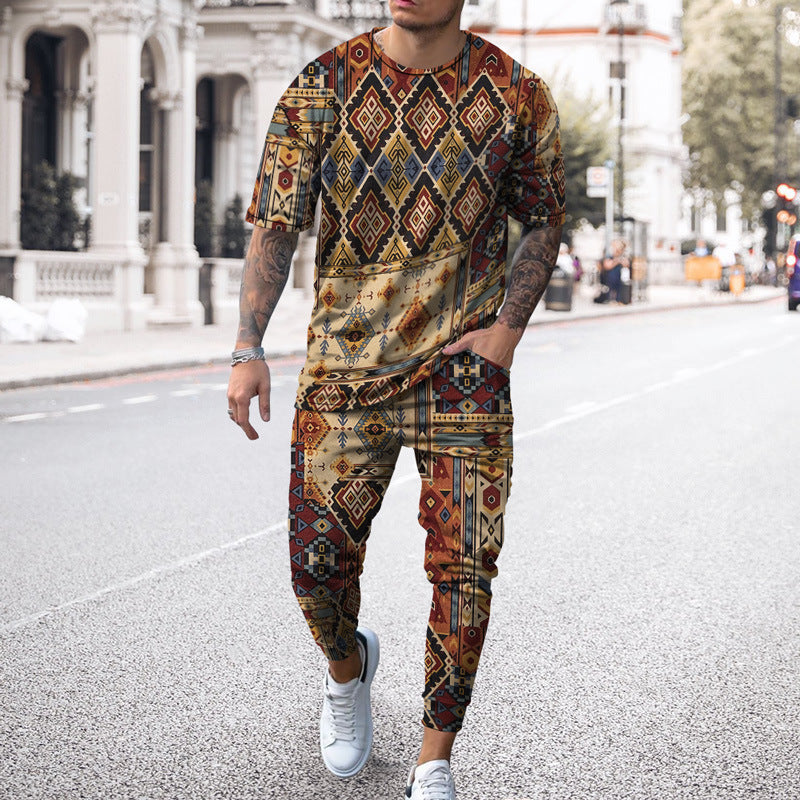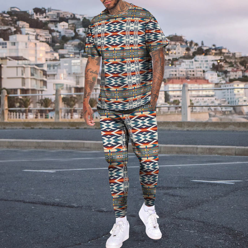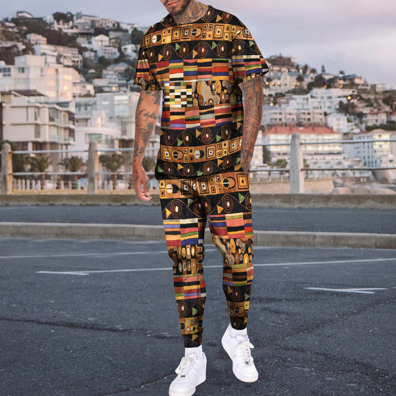 Fashion Sports Men Casual Short-sleeved T-shirt Trousers Suit