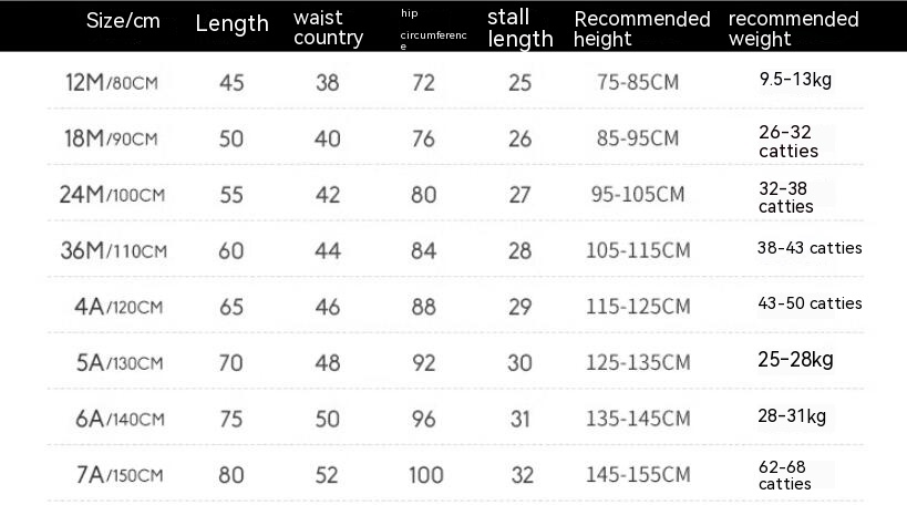 Reference height: 12M (80cm) 18M (90cm) 24M (100cm) Model try on 36M (110cm) 4A (120cm) 5A (130cm) 6A (140cm) 7A (150cm)