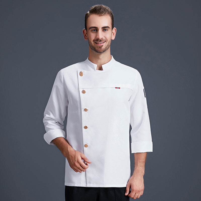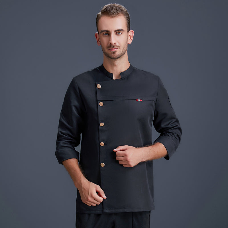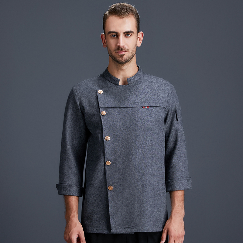 Grey Linen Chef Work Clothes Long Sleeve Men Hotel