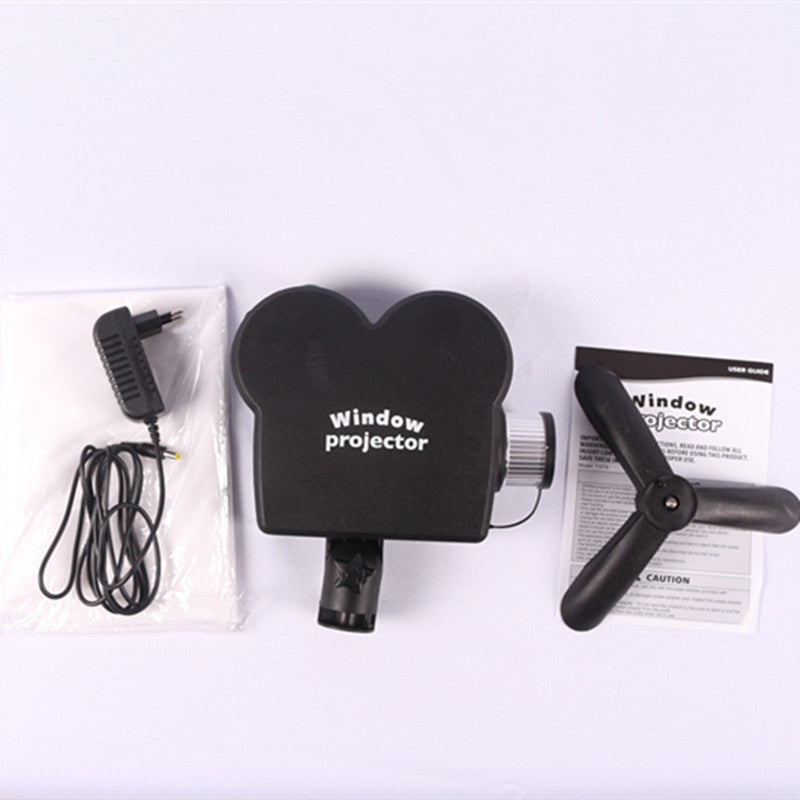 Full-color window movie projector plays 16-second movies in your windows – perfect Christmas and Halloween decorations.