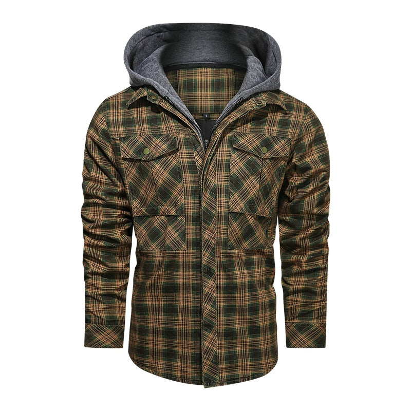 Men Long-sleeved Plaid Jacket Regular Fit Fleece Detachable Hoodies Jackets