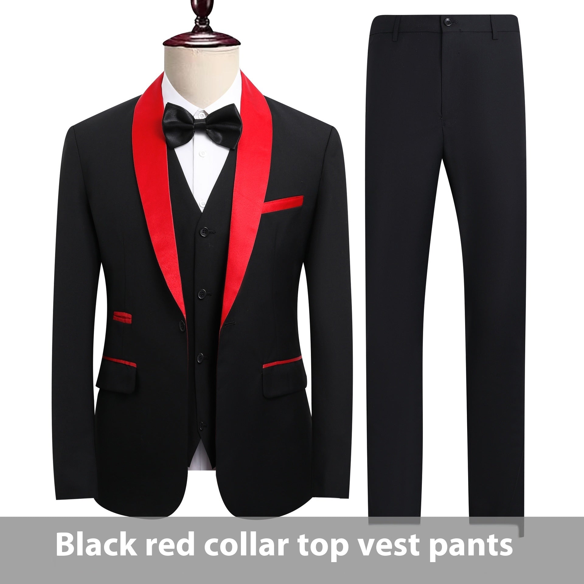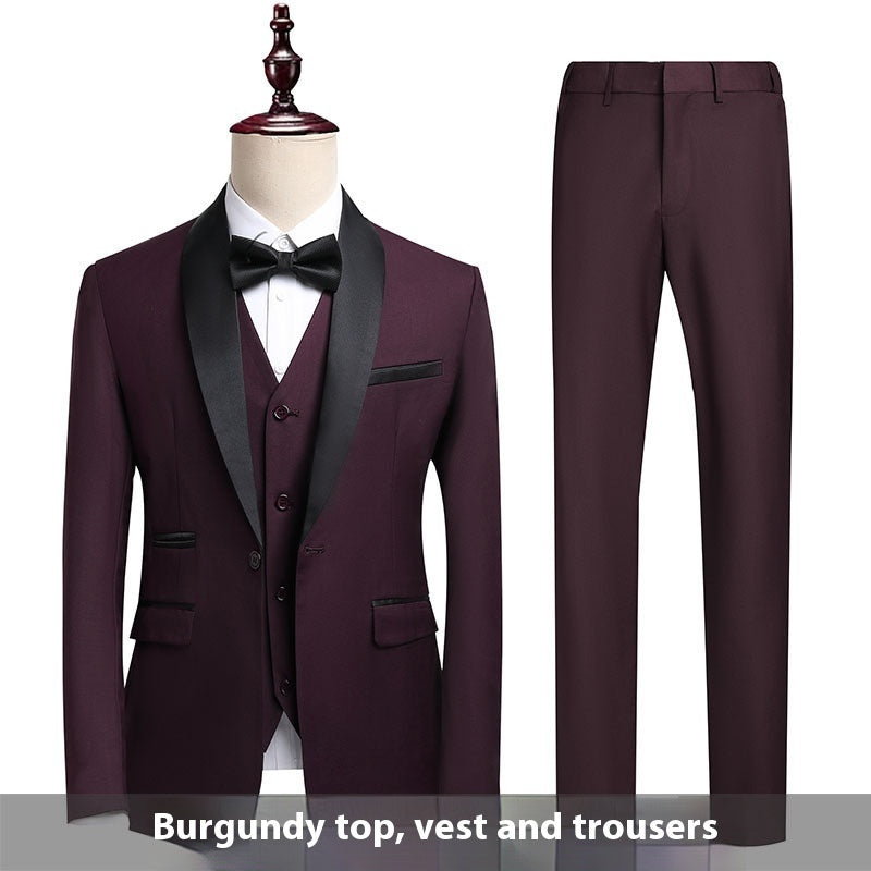 Color: gray top waistcoat pants, black top waistcoat pants, dark red top waistcoat pants, dark green top waistcoat pants, apricot top waistcoat pants, navy blue top waistcoat pants, light blue top waistcoat pants, royal blue top vest pants, white top vest pants, black shirt red collar top vest pants