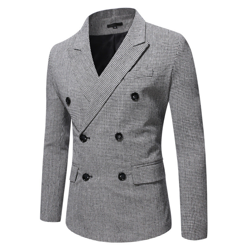 Men's Houndstooth Loose Double Breasted Casual Suit Jacket