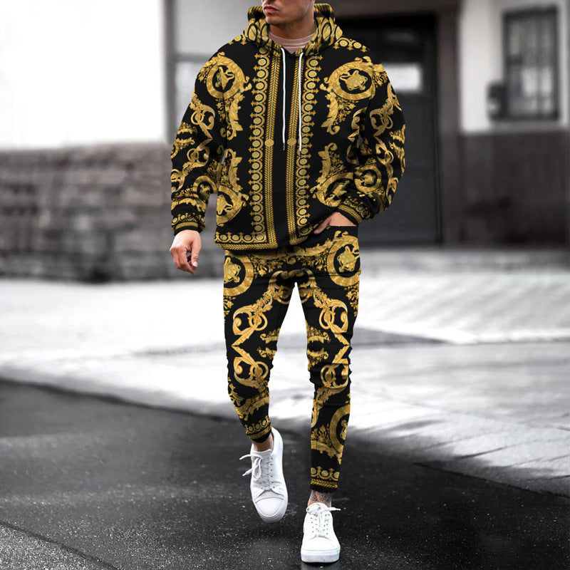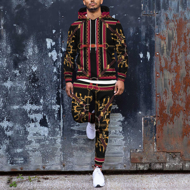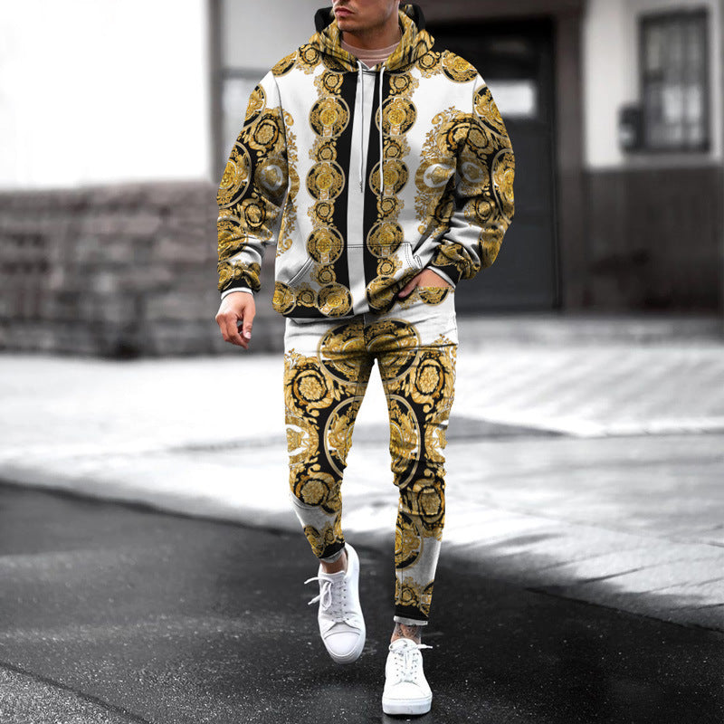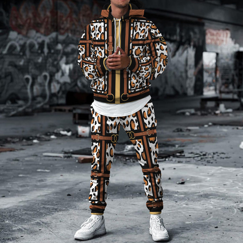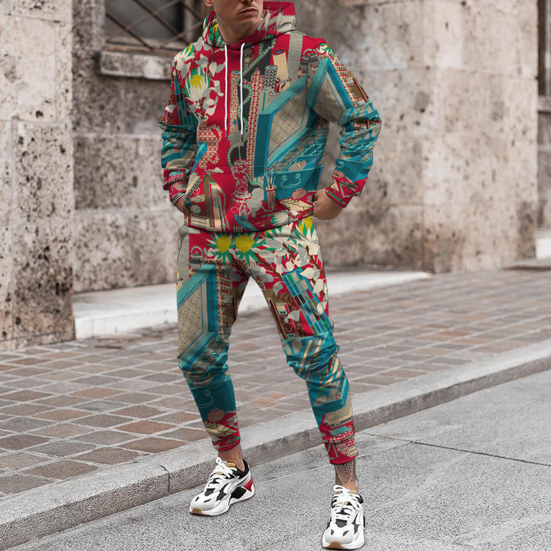 Men's Printed Hooded Pullover Sweatshirt Pants Set