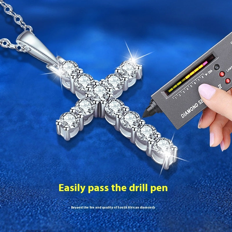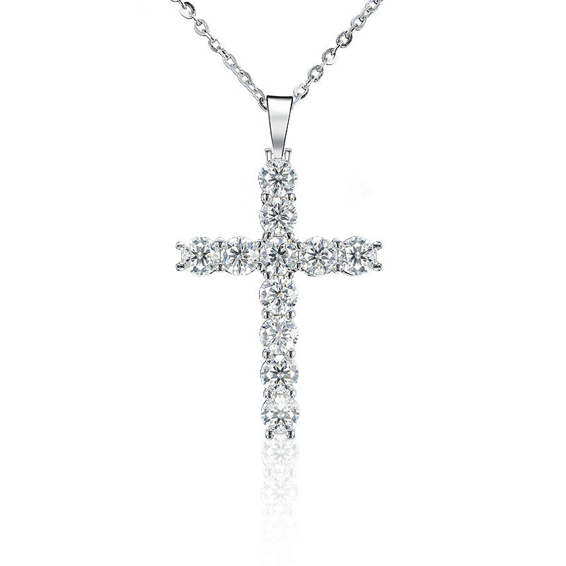 Moissanite 925 Sterling Silver Cross Necklace Pendant For Women