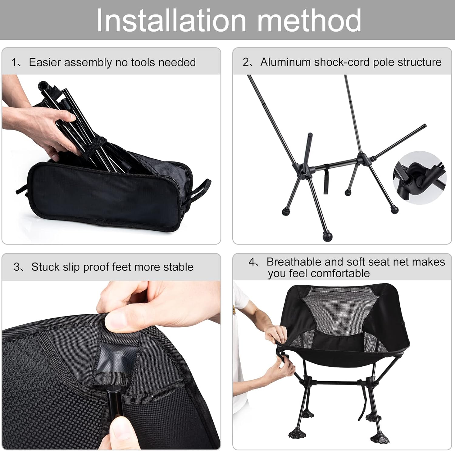 Portable Camping Chair Backpacking Chair With Anti-Slip Large Feet And Carry Bag For Outdoor Camp Hiking Capacity 220 Lbs