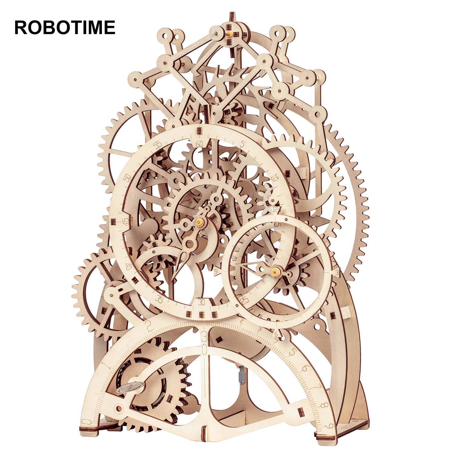 Robotime Rokr Pendulum Clock 170 Pcs 3D Wooden Puzzle Toys Building Block Kits Assembly Gifts For Children Adults Dropshipping