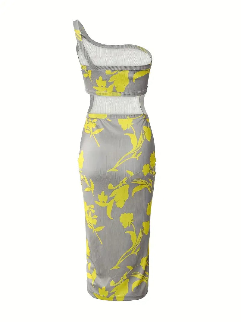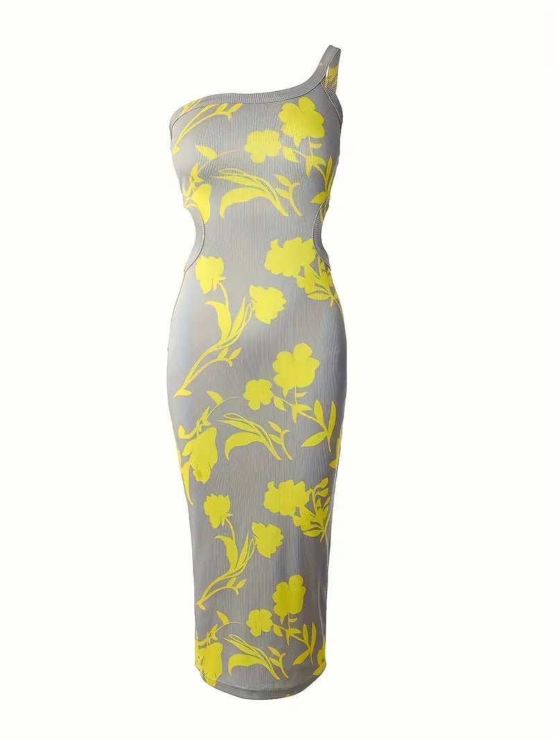 Spring Summer One-shoulder Hollow Rib Knit Dress