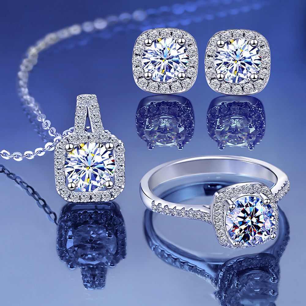Color: ring (zircon), ring (mozanne diamond), stud (zircon), stud (mozanne diamond), necklace (zircon), necklace (mozanne diamond), full set (zircon), full set (mozanne diamond)
