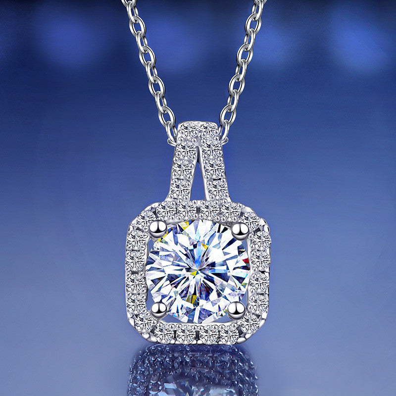 Sterling Silver Moissanite Bright Heart Square Bag Necklace