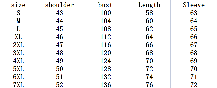 Size: S/M/L/XL/XXL/3XL/4XL/5XL/6XL/7XL