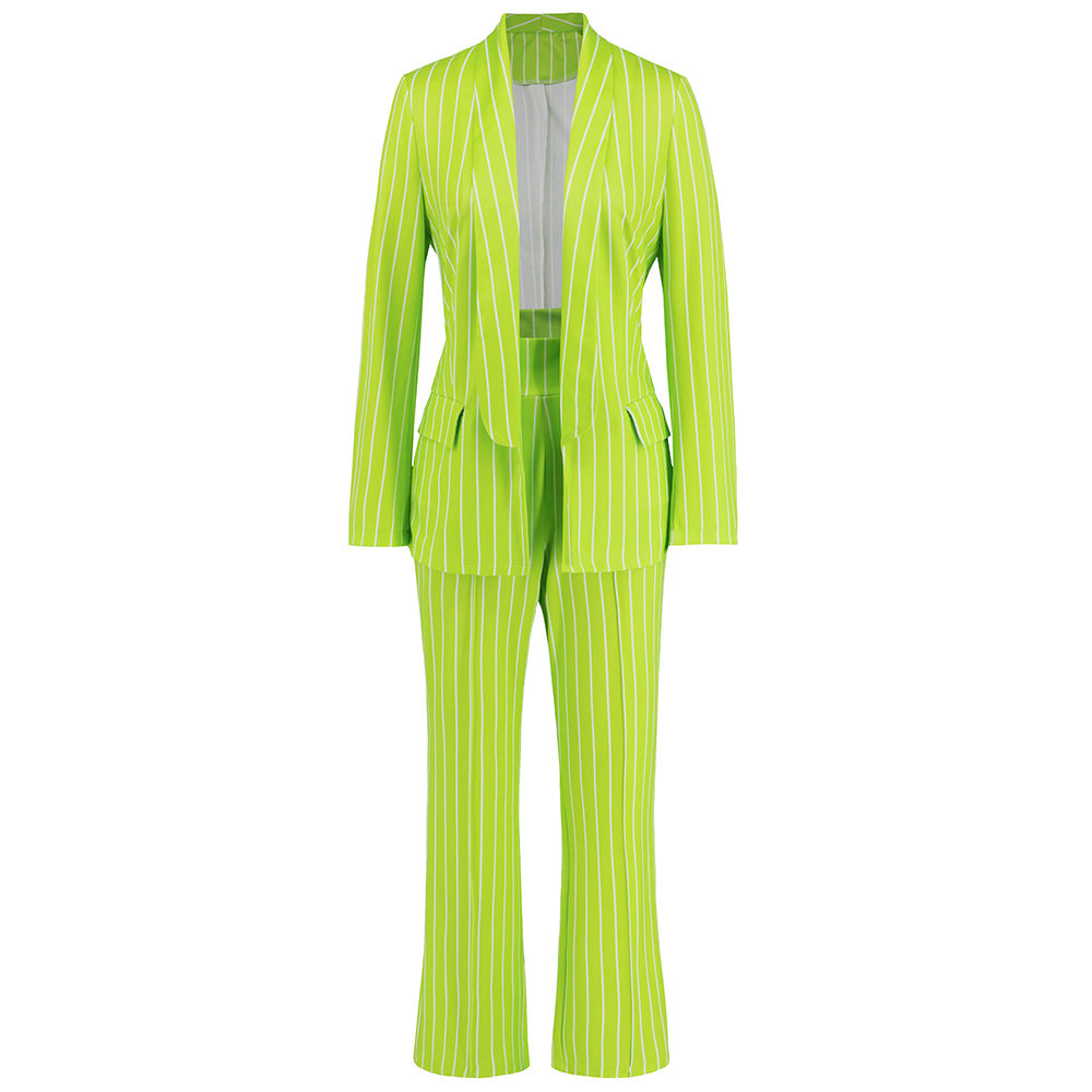 Women's Fashion Casual Striped Blazer Straight-leg Wide-leg Pants Suit