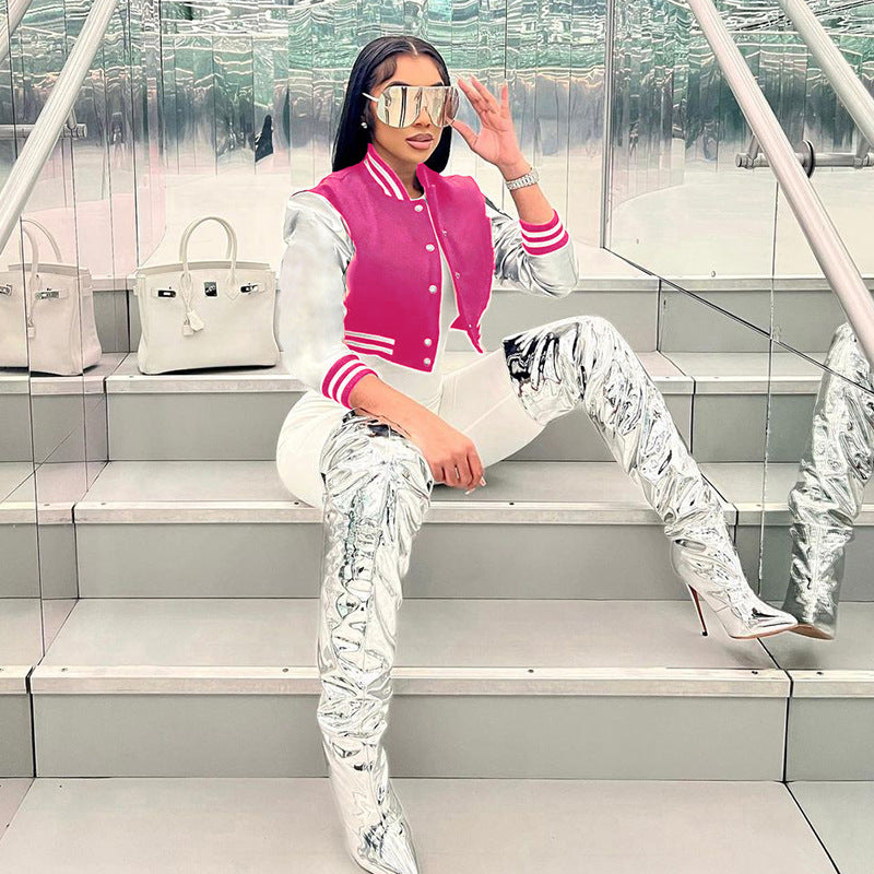 Women's Fashion Embroidery Stitching Slim-fit Baseball Uniform Coat