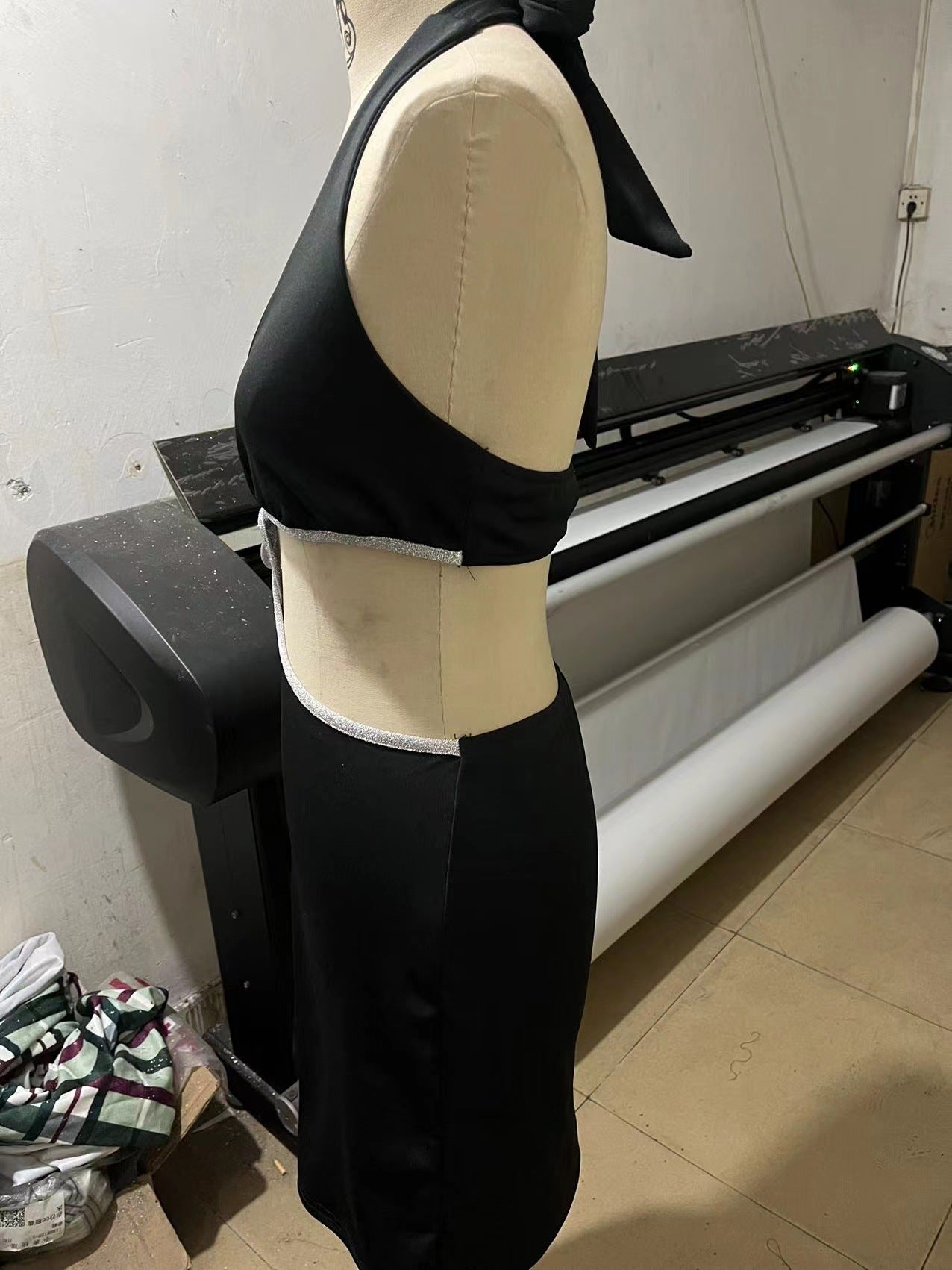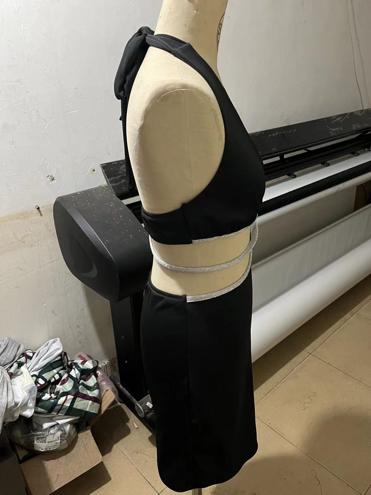 Women's Fashion Halter Low Cut Contrast Color Hollow Dress