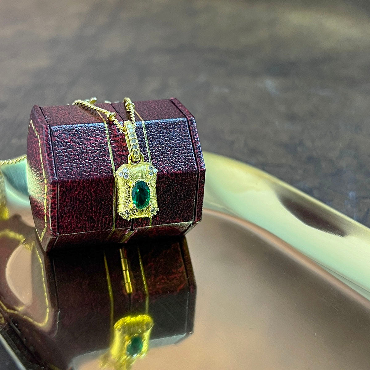 Women's Fashion Square Sugar Emerald Zirconia Brushed Pendant Necklace