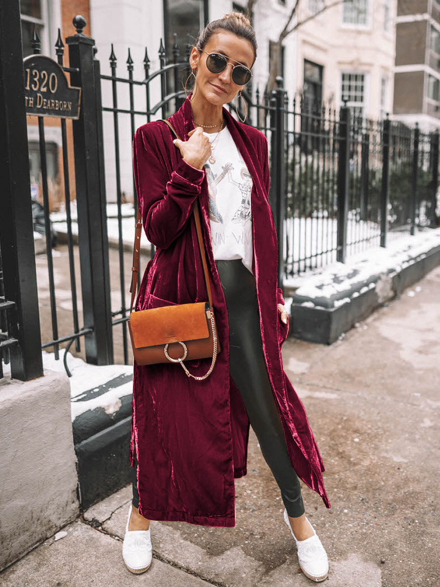 Women's Fashion Temperament Pure Color Long-sleeved Overcoat