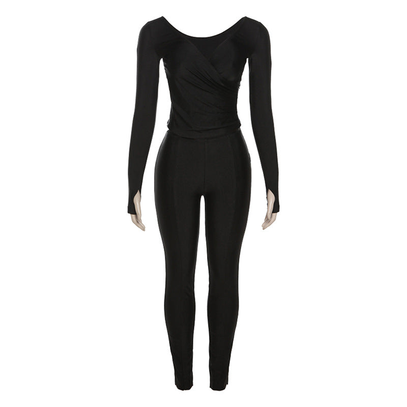 Women's Fashionable V-neck High Waist Tight Trousers Casual Sports Suit