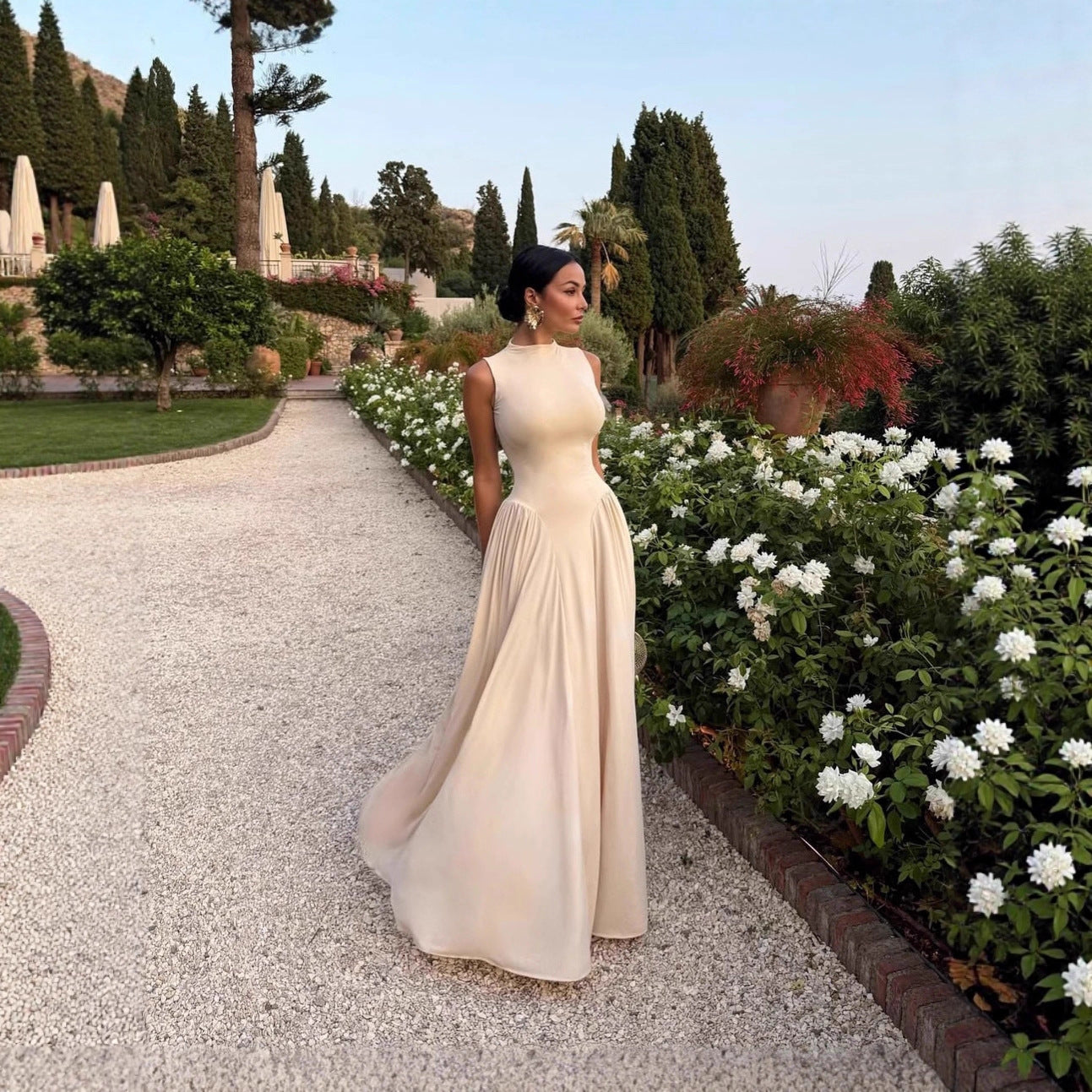 Womens Round-neck Halter-style Sleeveless Dress